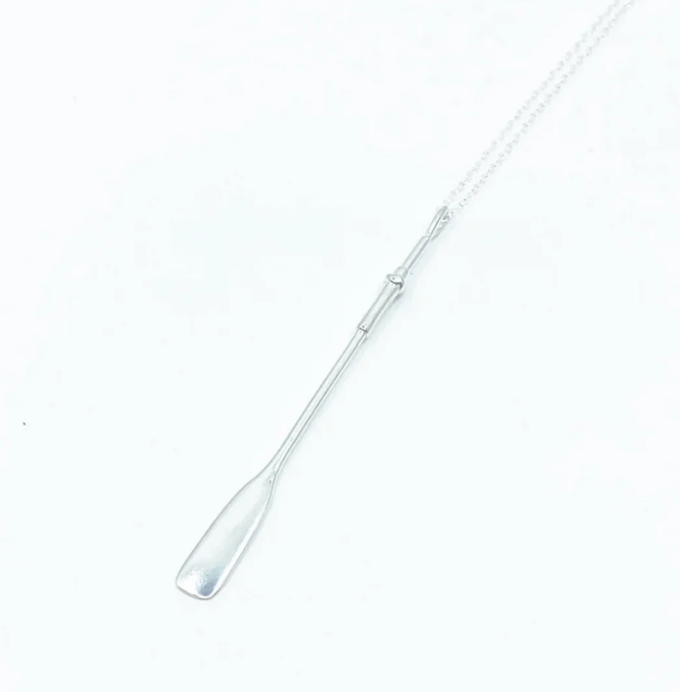 Celebrate the timeless connection between sea and shore with this sterling silver Oar Pendant, a true tribute to New England’s maritime heritage. This original design captures the elegance and functionality of a classic oar, reimagined in premium sterling silver for a stunning and sophisticated piece of jewelry.