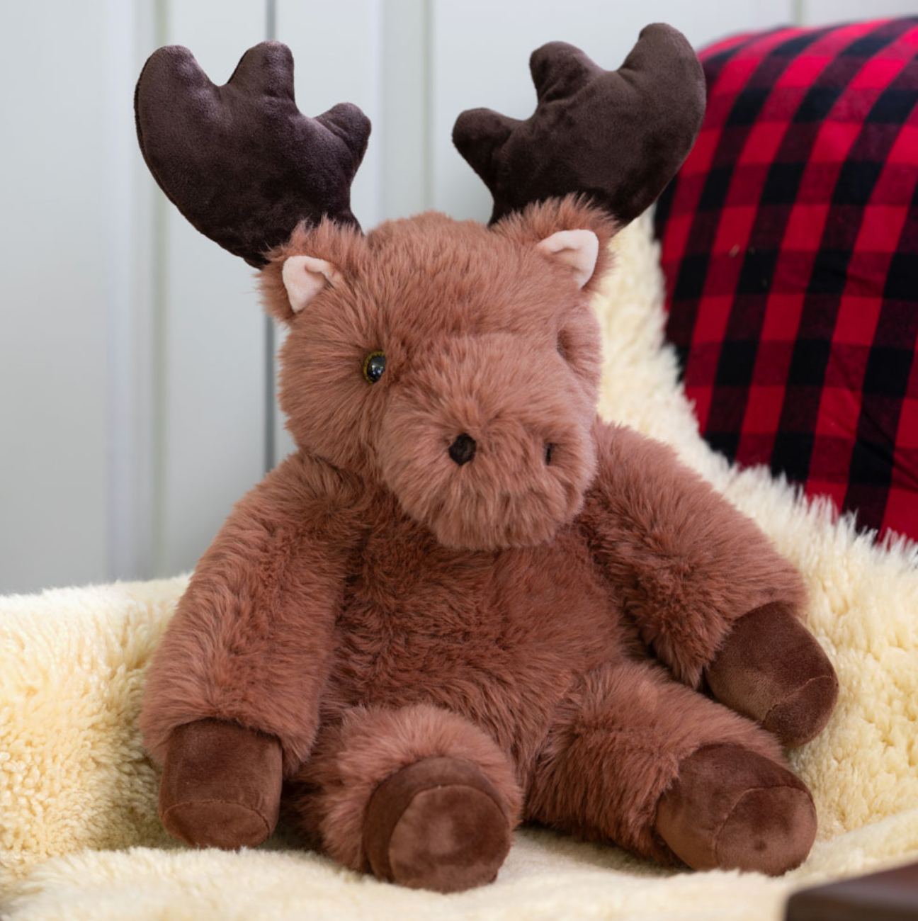 With majestic antlers and a soft, cuddly body, the 18" Oh So Soft Moose is MOOSE-t certainly magnificent. Whether exploring the forest or snuggling at bedtime, this moose stuffed animal is the perfect companion with its plush, pillow-like body, velvety antlers, and adorable hooves. Guaranteed for life and filled with love in Vermont using 100% recycled plastic stuffing, there’s no better FUR-ever friend than this moose.