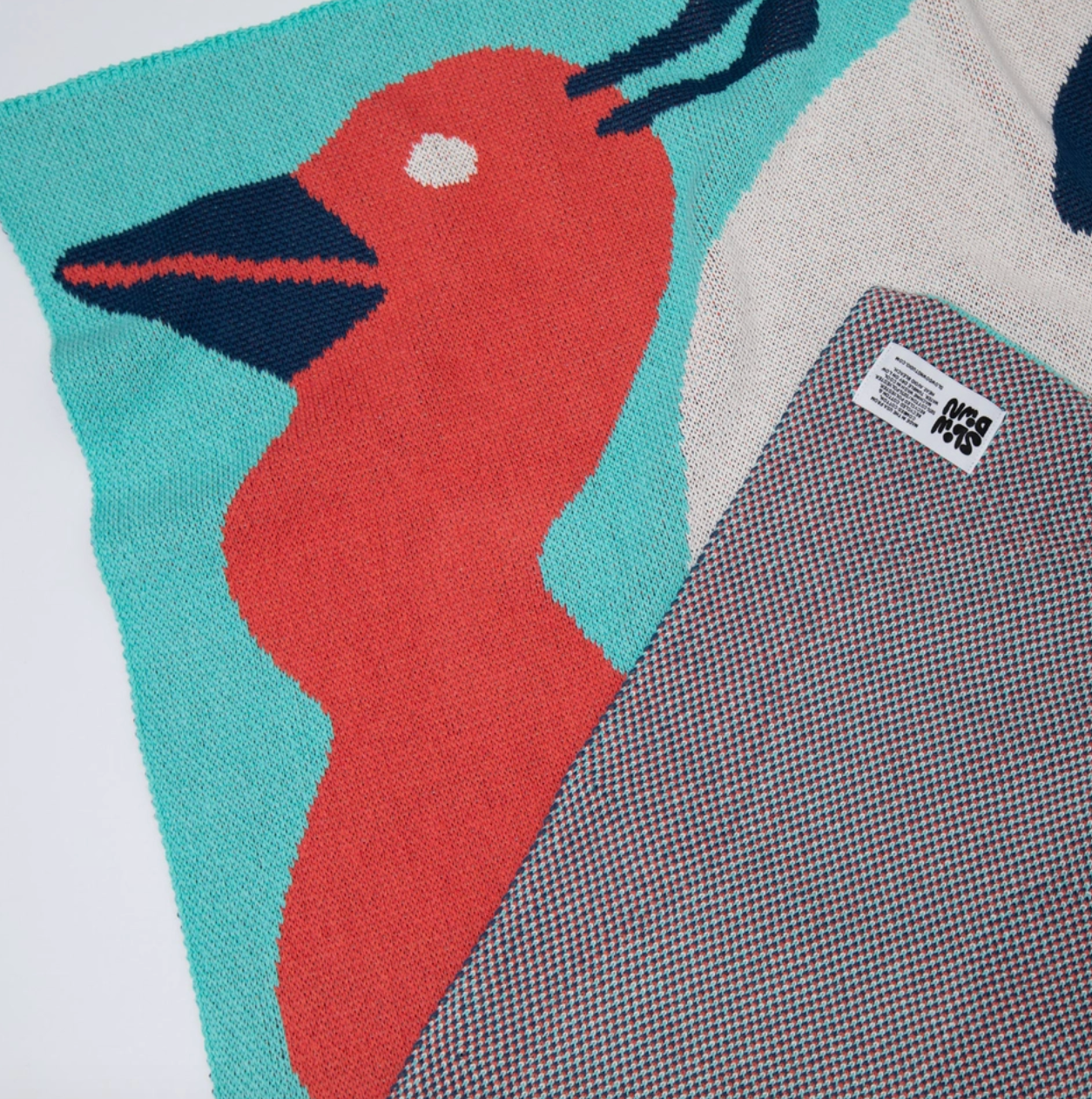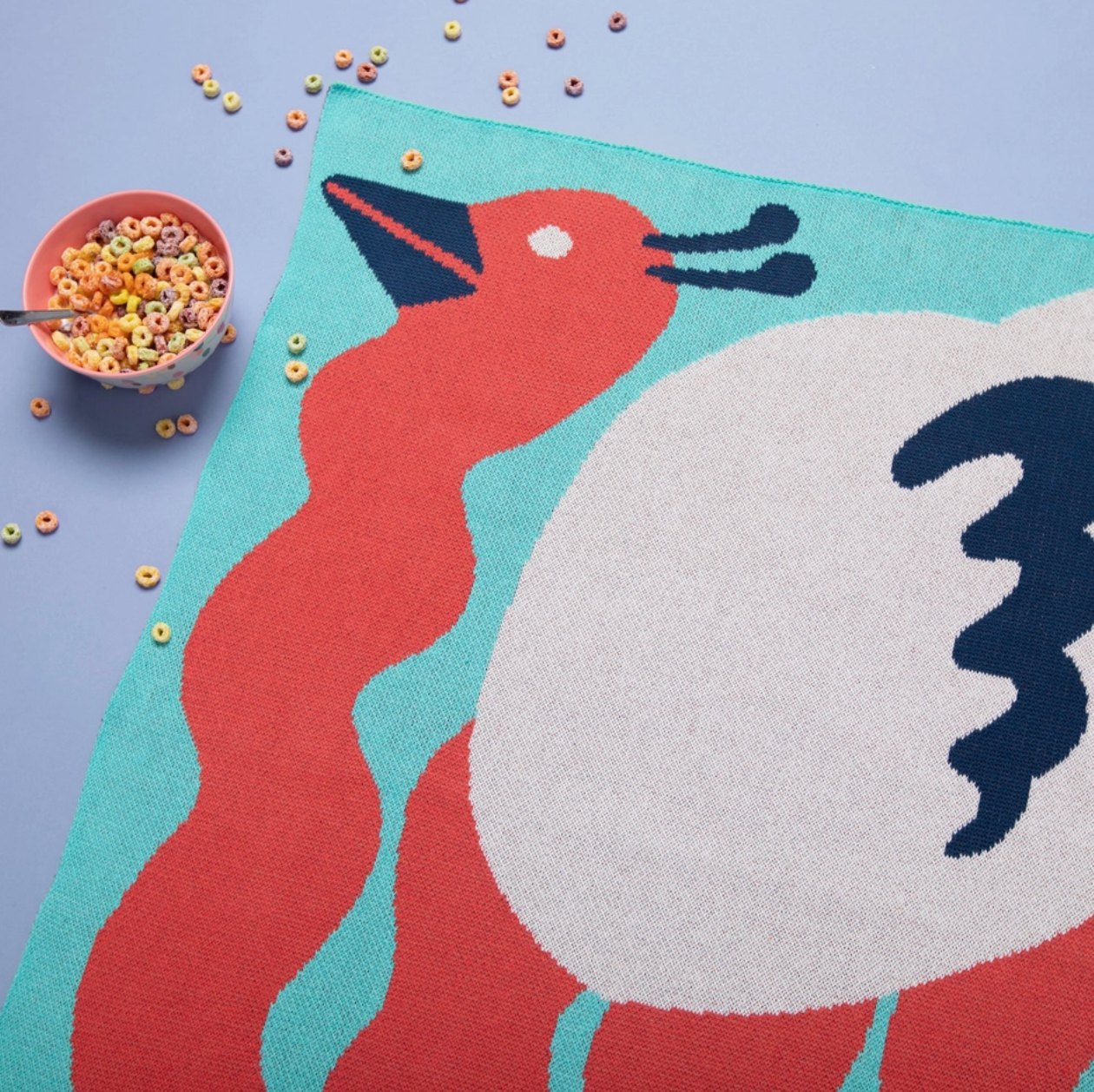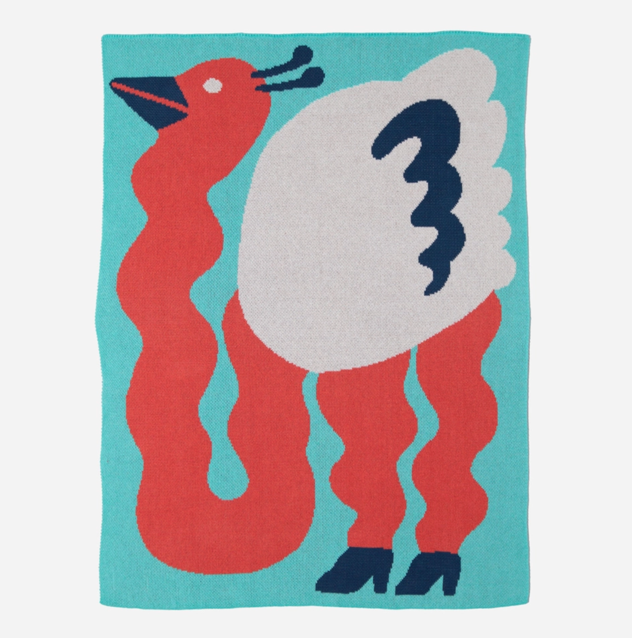 The Ostrich Mini Blanket was designed by Australian-based Japanese artist Yoko Georgiou for Slowdown Studio. Slowdown Studio mini blankets are proudly made in the USA using a high quality and environmentally friendly recycled cotton blend. These blankets are super soft and won't pill or bleed, so your little ones can enjoy them for years to come.