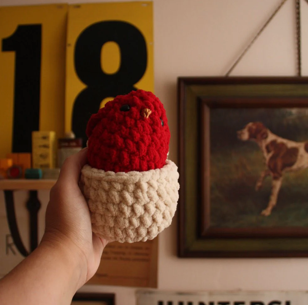 Meet Ozzie the Cardinal! Hatching toys in their shell measure about 5 1/2 inches long.
