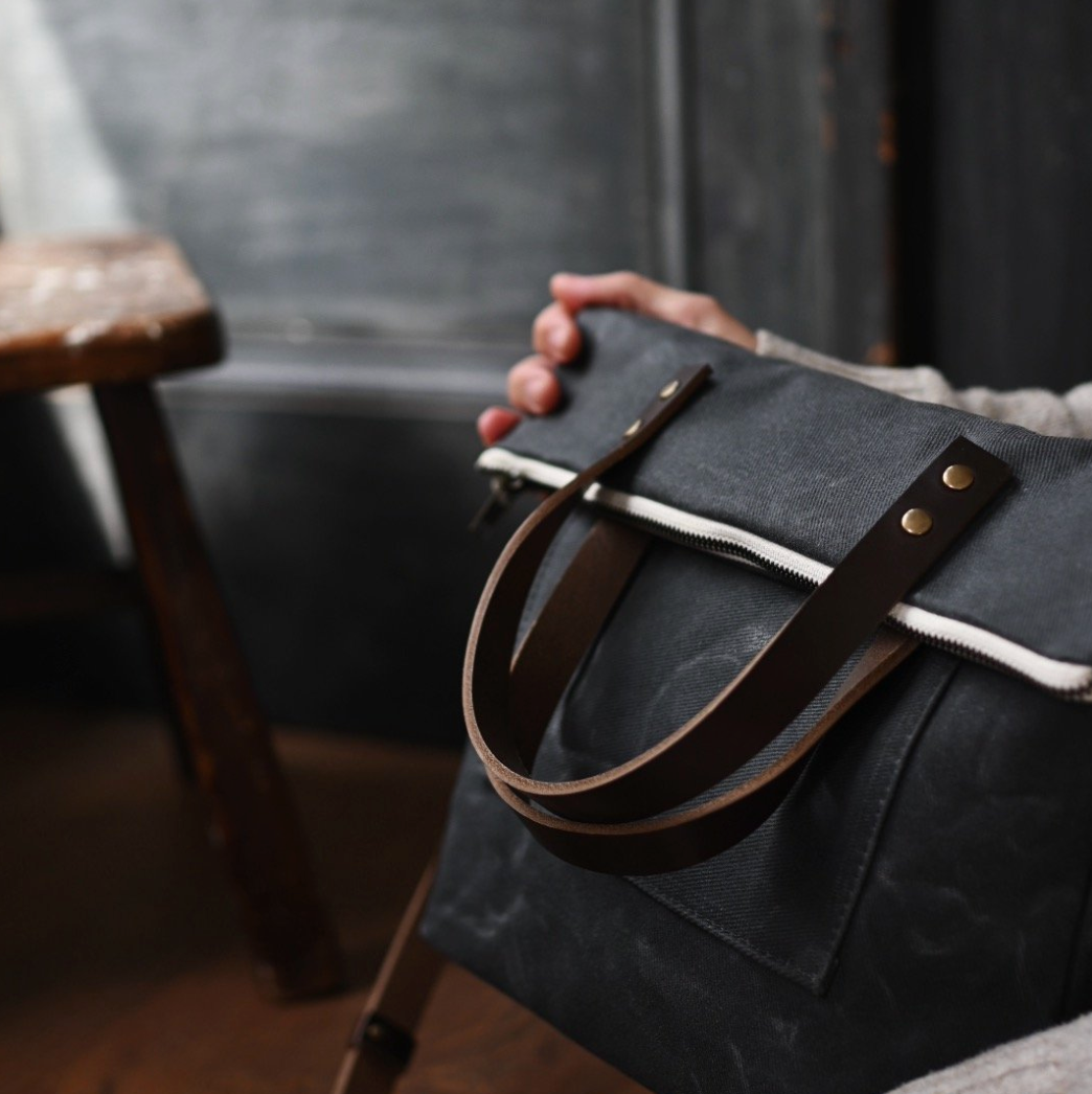 The Waxed Canvas Book Bag presents a thoughtful, minimalist design, with an seamless balance of utility and style.