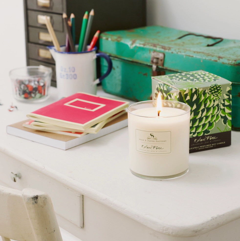 Notes of Siberian Fir, Pine & Cilantro Invigorate your space with the forest-fresh scent of Roland Pine! This pure soy candle is packed with notes of Siberian Fir, Pine boughs and fresh picked Cilantro. Light it up and literally turn your space into the happiest pine forest on earth! Soy wax is clean burning and our candles are made in New York. Doesn’t get any better!