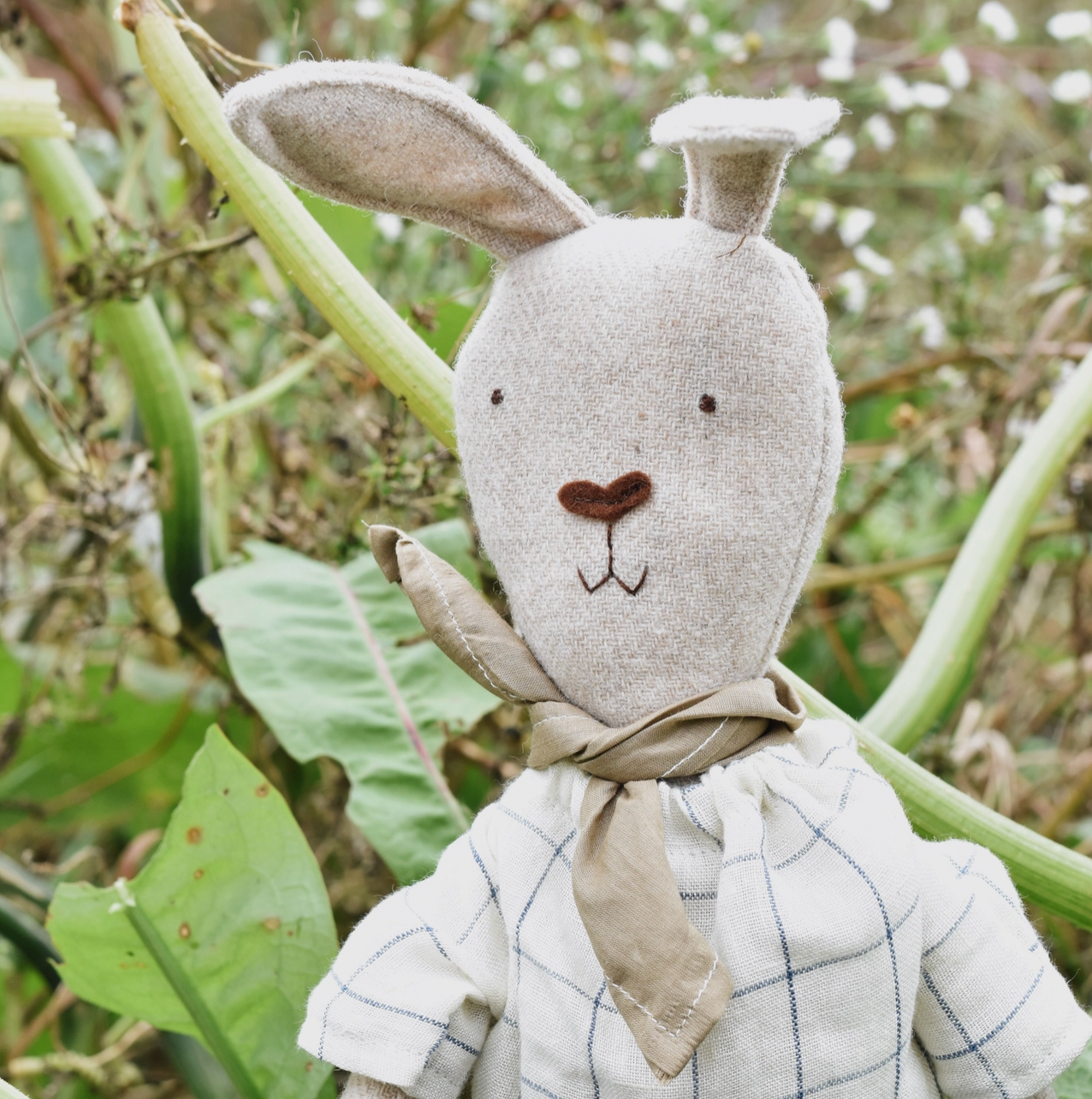 The perfect stuffed rabbit doll. Soft and plush woolen animals are handcrafted using 100% natural fibers sourced from american farms. They're durable, safe and eco-friendly! Each heirloom quality animal is designed to be loved for generations.