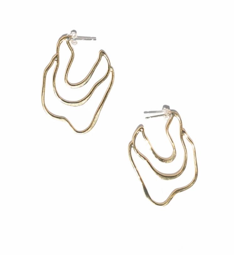 Hand carved and cast with a high polished finish. Approx. 1 1/2” in L & 1 1/8”w. Available in solid brass and sterling silver. All earrings have sterling silver posts.