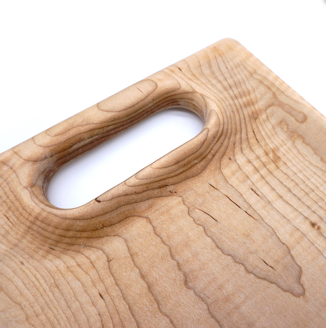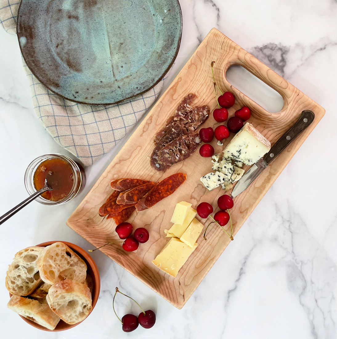 The Shackleton-Thomas Maple Rectangle Handled board has a slight recess on one side to keep items in place on the board while serving. Shackleton-Thomas is a team of world-renowned furniture and pottery makers that are creating masterpieces in the hills of Vermont. We have partnered with them to make three of their unique and gorgeous board designs in Dorset, Vermont.