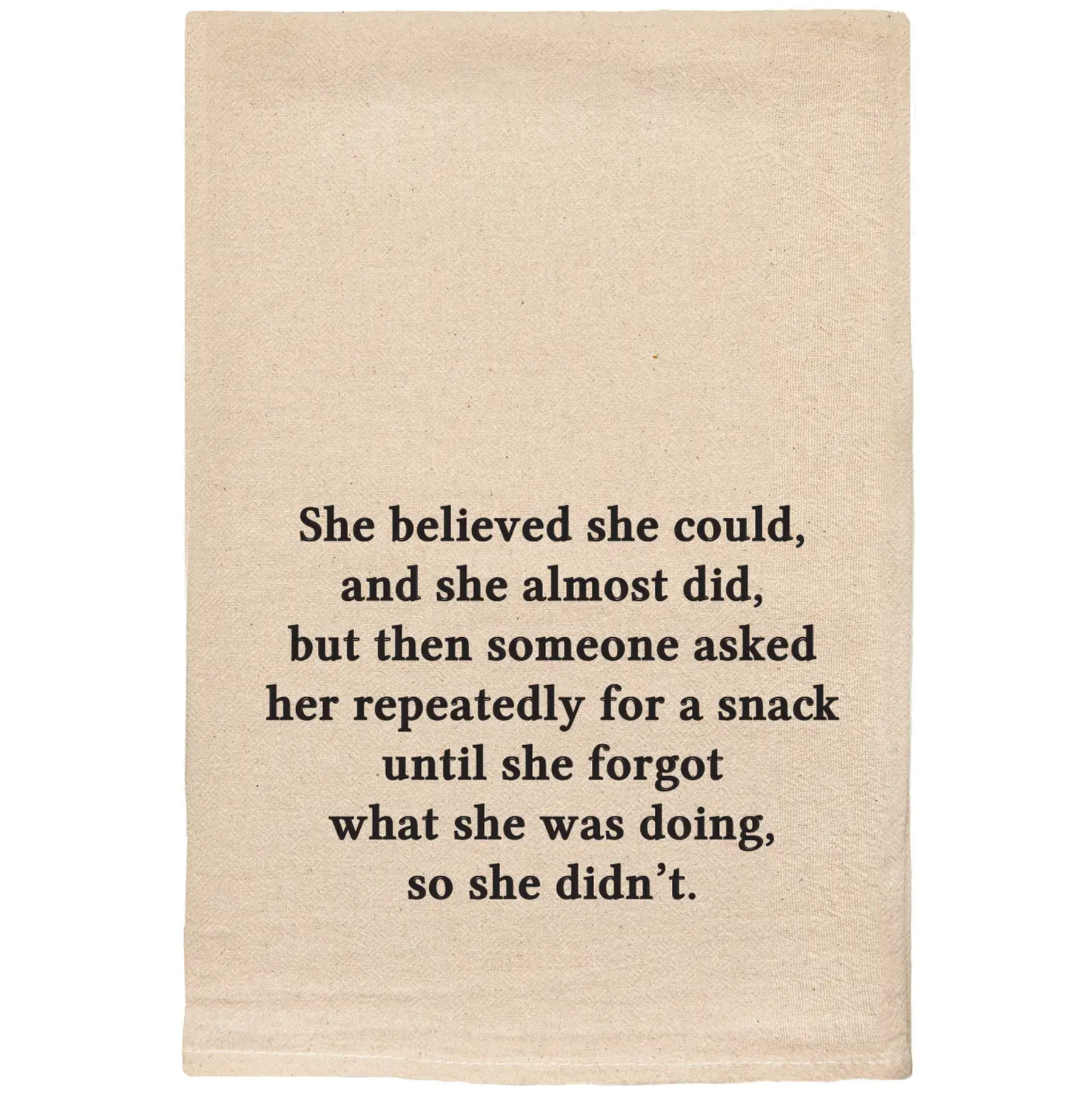 These natural kitchen towels are sewn and printed by hand (by an all female team!) in Michigan from 100% unbleached cotton. They measure approximately 24" x 26" when opened up, and can be thrown in the washer and dryer. They're printed with an eco-friendly, water-based ink, that's good for the environment and soft to the touch! They make a great hostess gift with a bottle of wine, or a fun stocking stuffer or white elephant gift too!