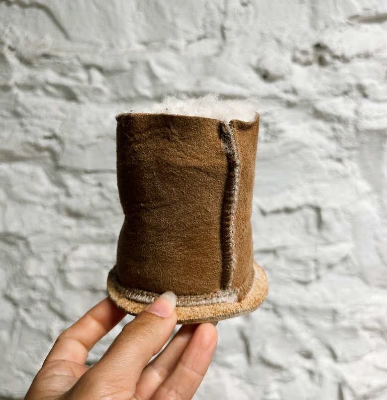 Made in Colorado, from genuine sheepskin, these can koozies will keep your hand toastie, and your beer or soda cool.