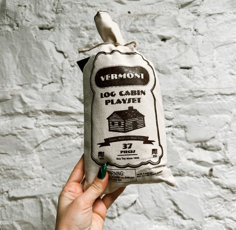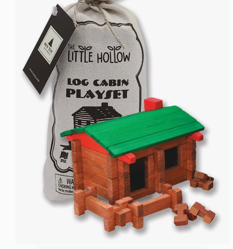 The building styles and piece counts of these sets are designed for today's young builders, challenging them to use their imaginations. These sets are packed in nostalgic canvas bags, adding a touch of the past. The all-wood pieces are colored with food-approved dyes. Included are building directions and extra building pieces to allow for alternative building design.