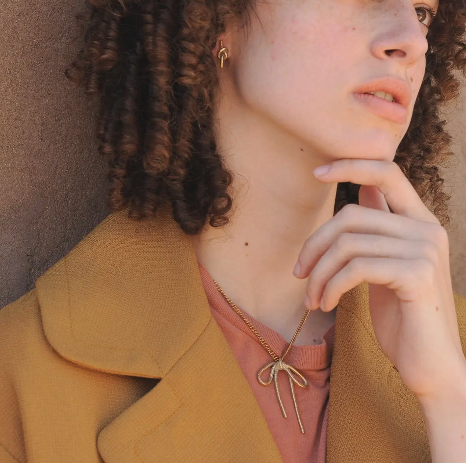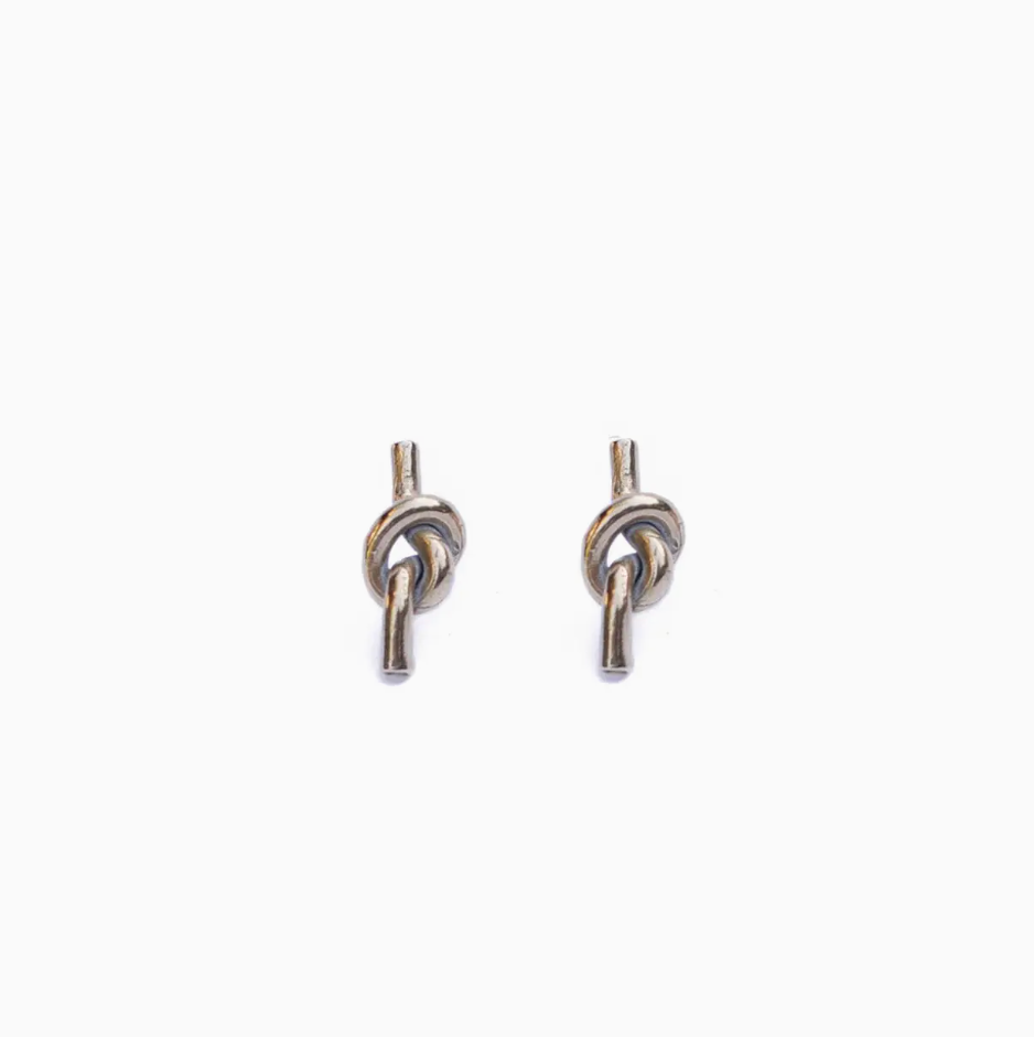 Small knots hang vertically, and are just a smidge under 3/4". Sterling silver posts and backings. Handsculpted and cast in solid brass. Made in Oakland, CA.