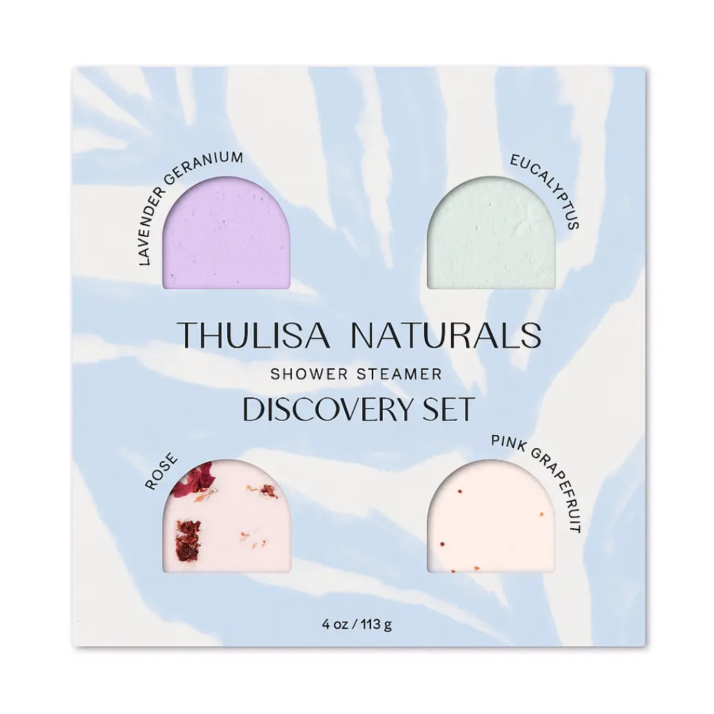 •Contains 4 shower steamer tablets — one each of Eucalyptus, Pink Grapefruit, Lavender & Geranium, and Rose essential oil blends