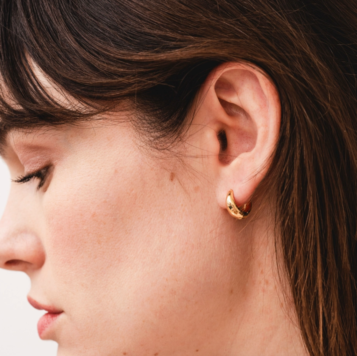 Elevate your ear stack with the Tapered Huggies. These not-too-big, not-too-small earrings boast a sleek and contemporary design, featuring a tapered silhouette that effortlessly hugs your earlobe. Crafted with precision from gold-filled material, these huggies offer a timeless blend of style and comfort, making them the perfect accessory for both the everyday as well as holidays and special occasions.