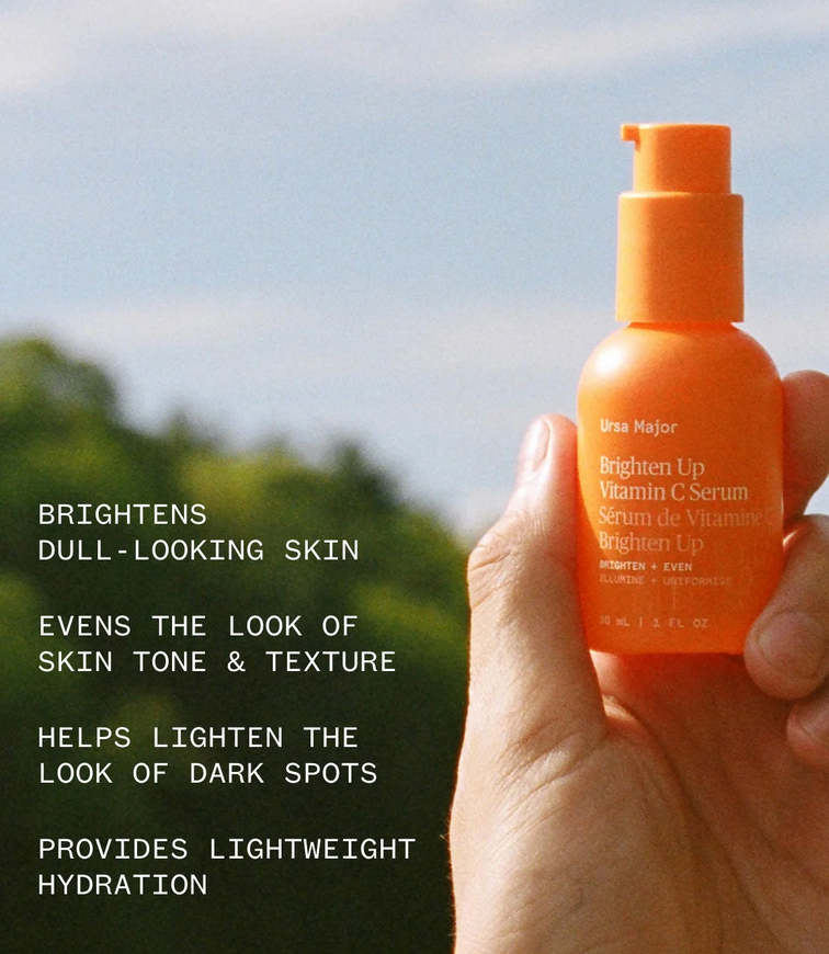 Lightens & brightens: If you’ve soaked up a little too much sun over the years, it might be time for a Vitamin C brightening serum. Ours includes concentrated forms of Vitamin C, along with other powerhouse natural actives that brighten dull-looking skin and lighten stubborn dark spots.