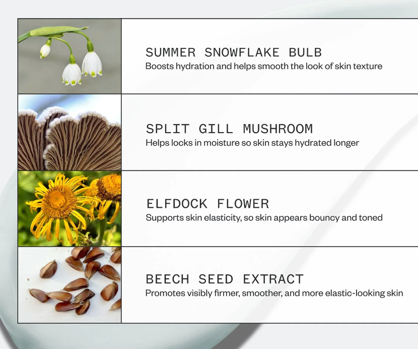 - Full of plumping power Powerful plant actives help support skin elasticity so fine lines look softer, texture feels smoother, and skin has a healthy spring.
