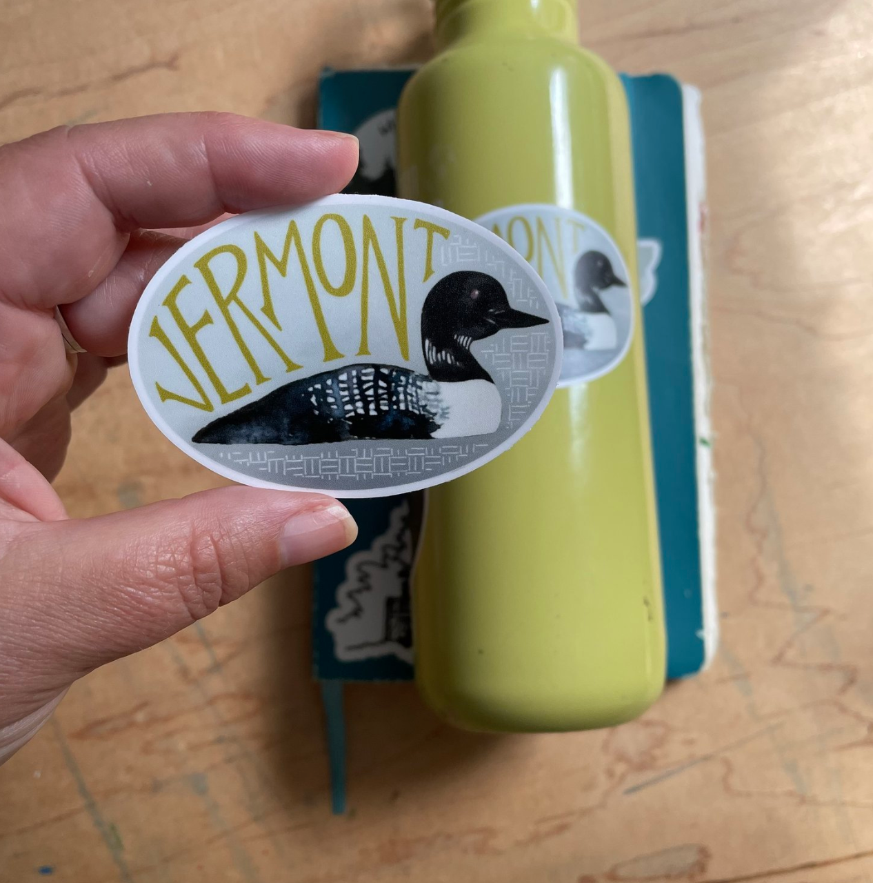 Super tough sticker featuring Vermont's loons. 2" x 2 3/4"