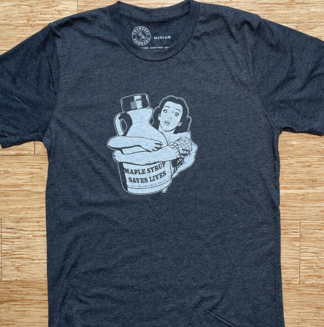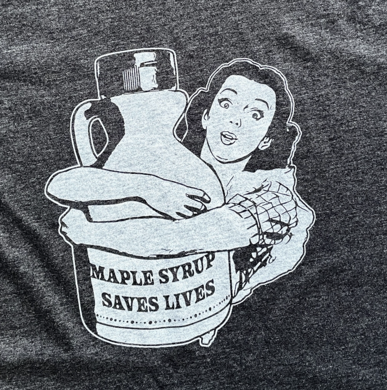 Printed on Heather Mocha unisex 50% Combed Ring Spun Cotton, 50% Polyester Royal Apparel premium tee. Shirts made in the U.S.A. and screen printed by hand in N. Ferrisburgh, Vermont.