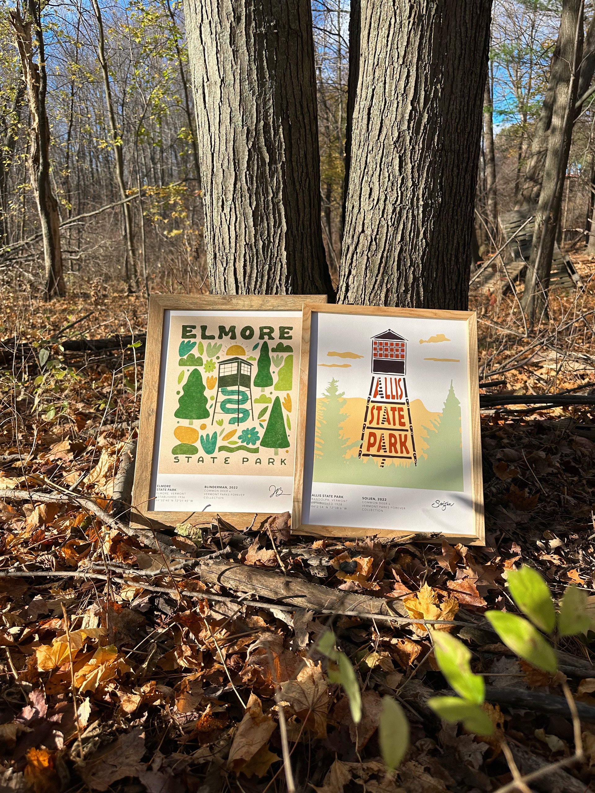 For the print collection, Common Deer works with area artists and graphic designers to create art that represents that amazing state park. Look for new releases throughout the year! In fall 2019, 7 parks and 7 artists were featured in the initial launch of the project. Help us celebrate the parks by tagging your posts of the collection with #vtparkscollection and @commondeer!