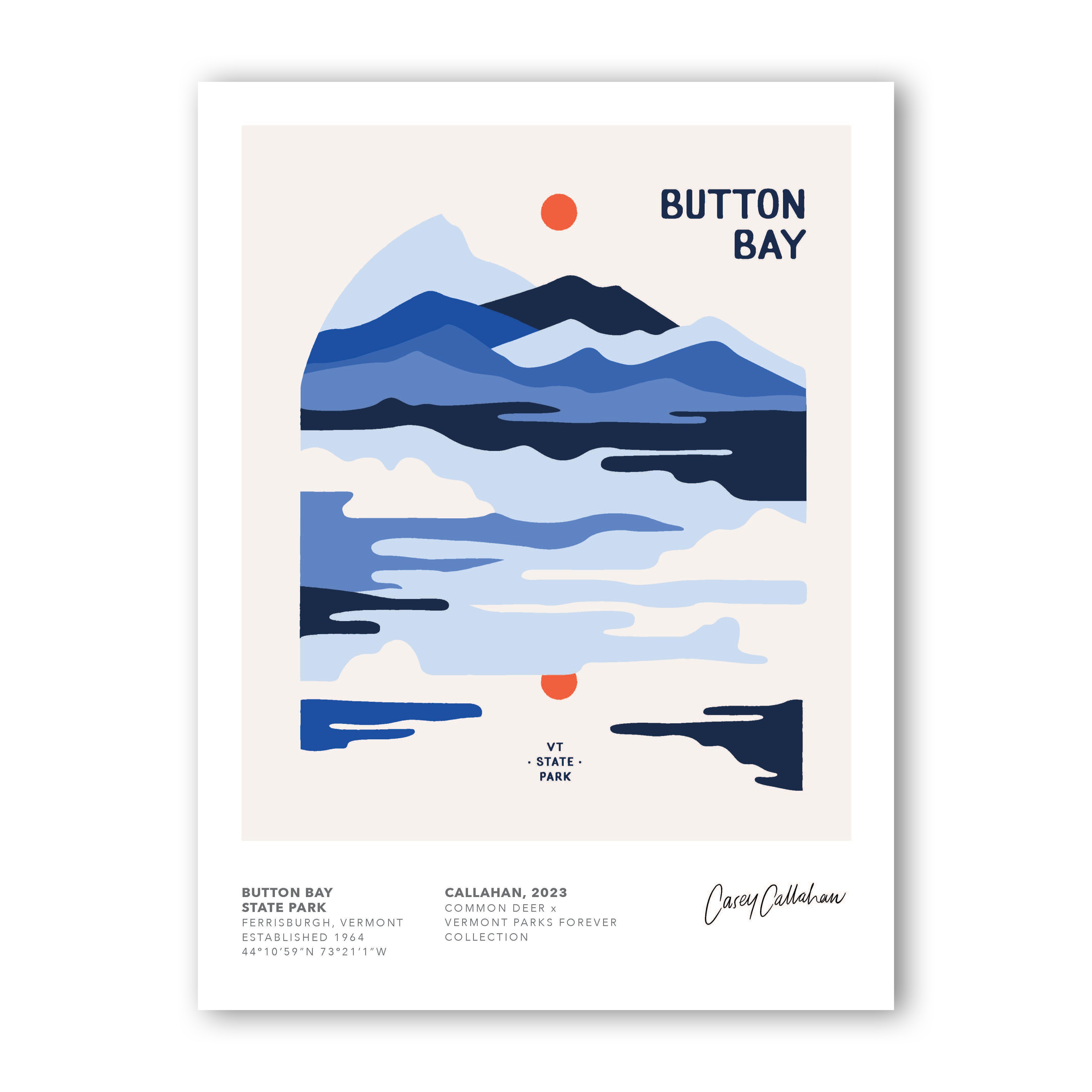 For the print collection, Common Deer works with area artists and graphic designers to create art that represents that amazing state park. Look for new releases throughout the year! In fall 2019, 7 parks and 7 artists were featured in the initial launch of the project. Help us celebrate the parks by tagging your posts of the collection with #vtparkscollection and @commondeer!