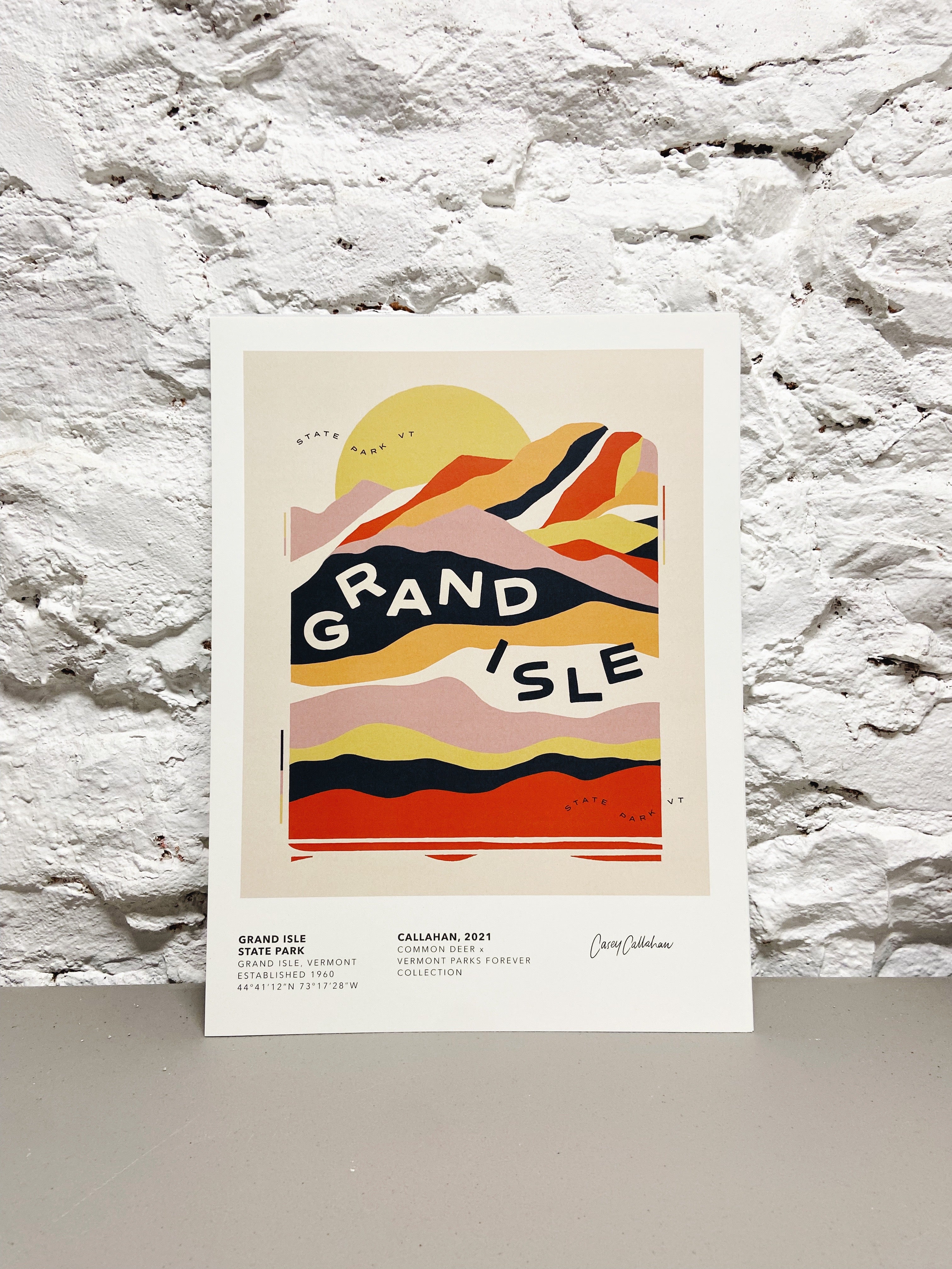 For the print collection, Common Deer works with area artists and graphic designers to create art that represents that amazing state park. Look for new releases throughout the year! In fall 2019, 7 parks and 7 artists were featured in the initial launch of the project. Help us celebrate the parks by tagging your posts of the collection with #vtparkscollection and @commondeer!