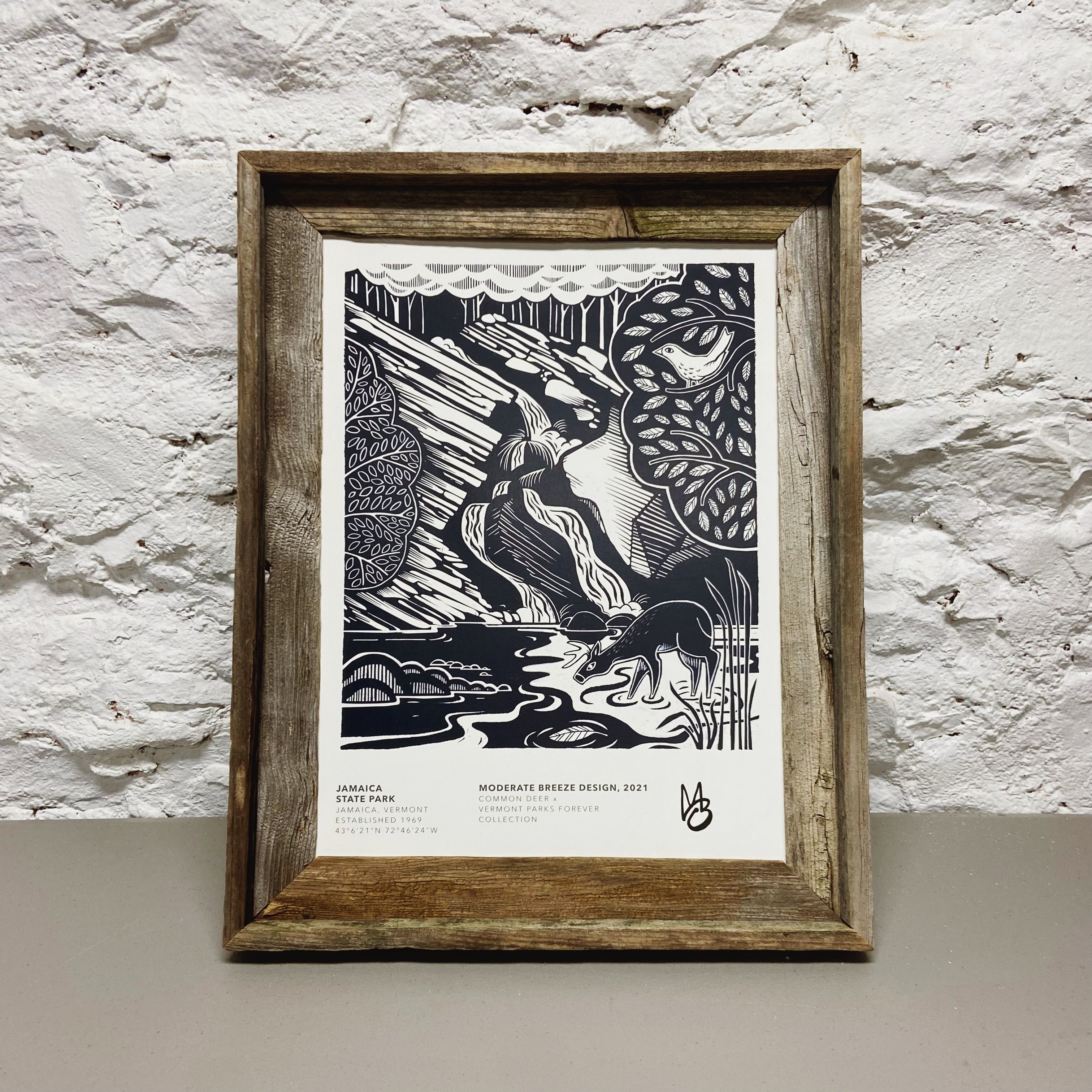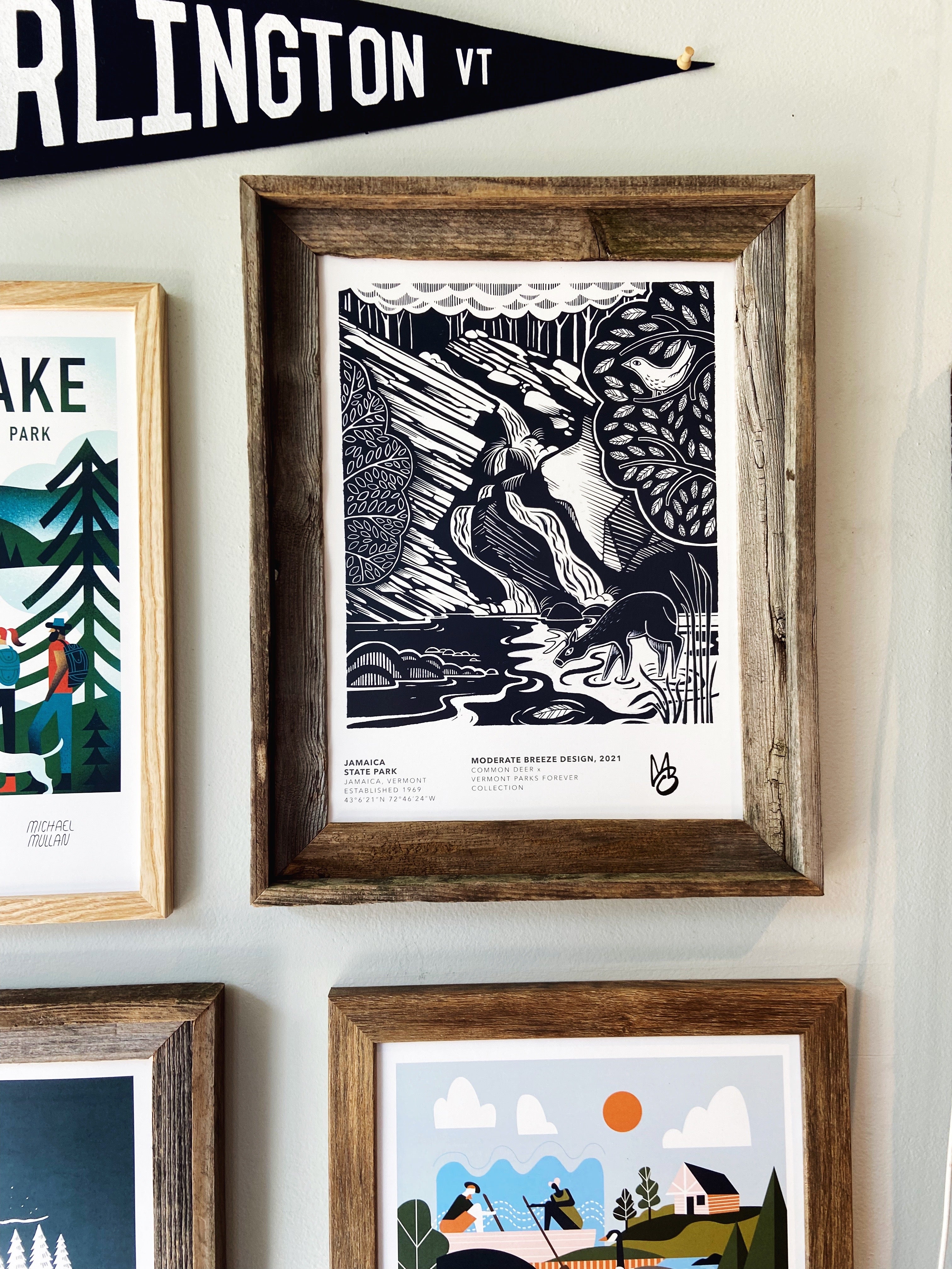 For the print collection, Common Deer works with area artists and graphic designers to create art that represents that amazing state park. Look for new releases throughout the year! In fall 2019, 7 parks and 7 artists were featured in the initial launch of the project. Help us celebrate the parks by tagging your posts of the collection with #vtparkscollection and @commondeer!