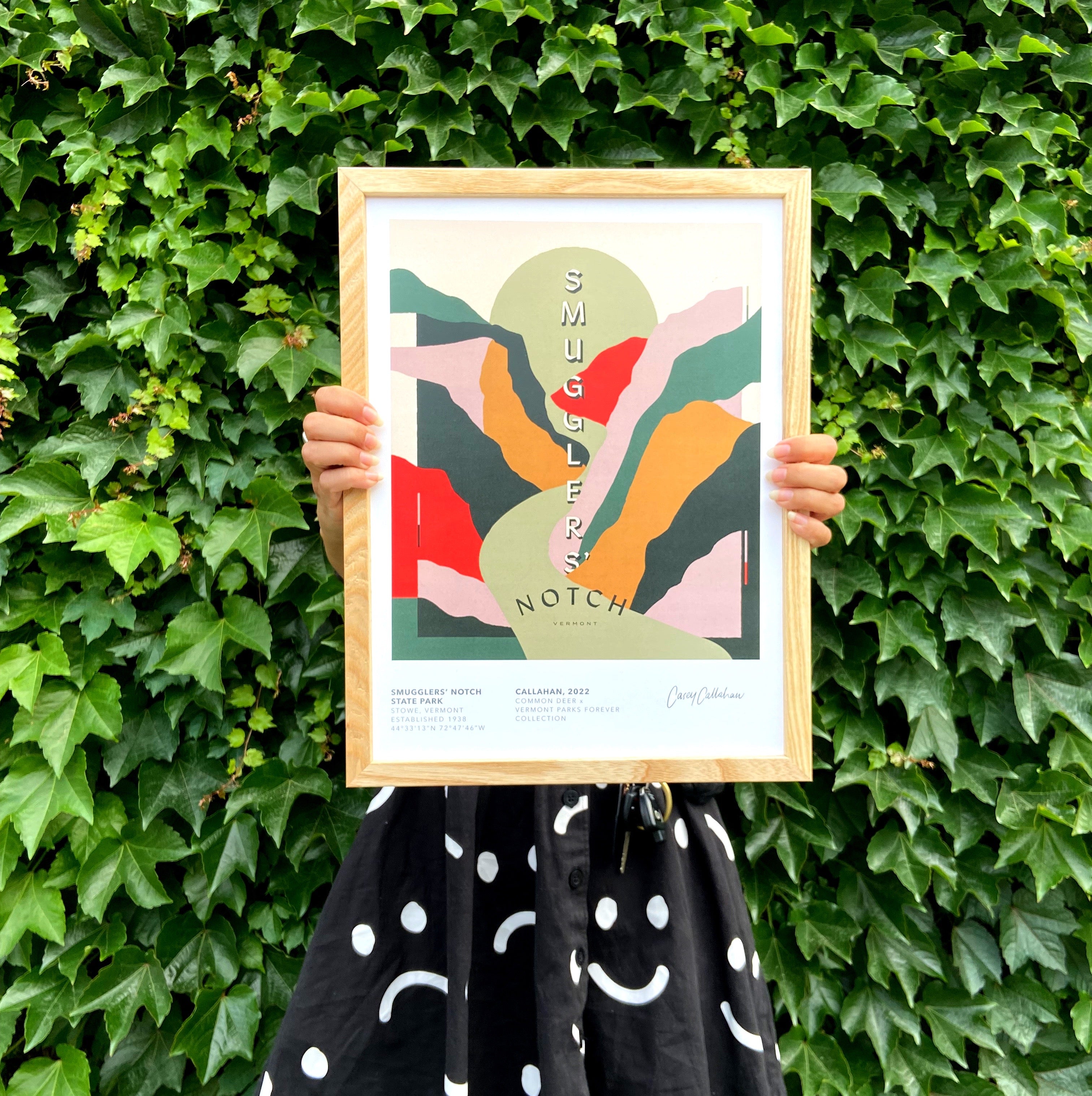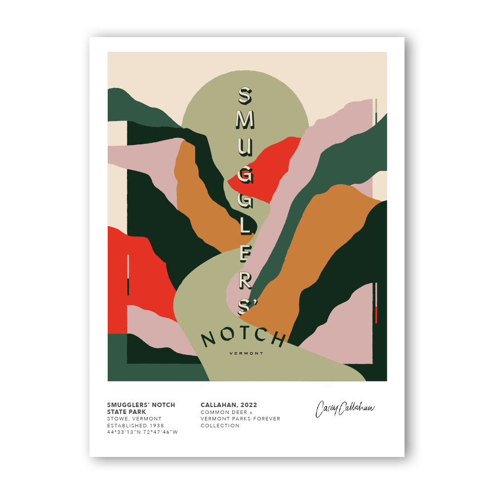 For the print collection, Common Deer works with area artists and graphic designers to create art that represents that amazing state park. Look for new releases throughout the year! In fall 2019, 7 parks and 7 artists were featured in the initial launch of the project. Help us celebrate the parks by tagging your posts of the collection with #vtparkscollection and @commondeer!