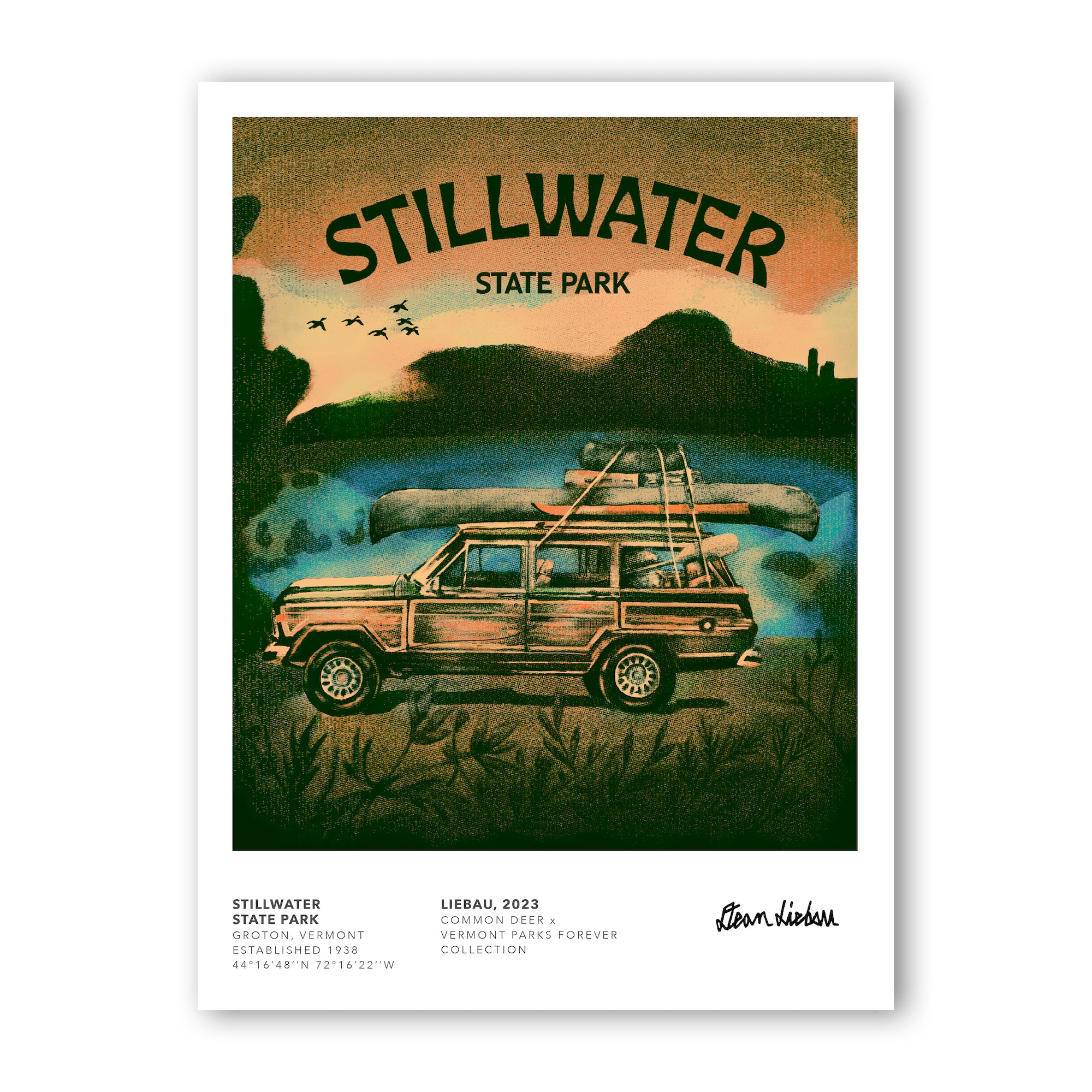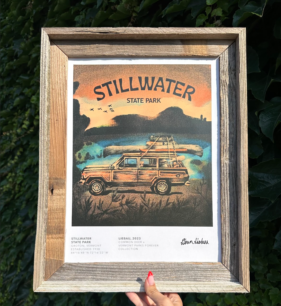 For the print collection, Common Deer works with area artists and graphic designers to create art that represents that amazing state park. Look for new releases throughout the year! In fall 2019, 7 parks and 7 artists were featured in the initial launch of the project. Help us celebrate the parks by tagging your posts of the collection with #vtparkscollection and @commondeer!