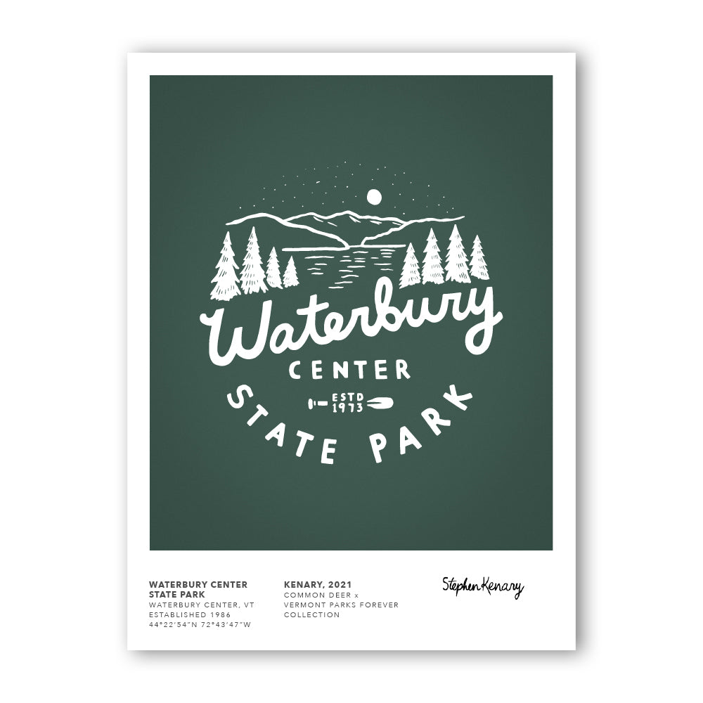 For the print collection, Common Deer works with area artists and graphic designers to create art that represents that amazing state park. Look for new releases throughout the year! In fall 2019, 7 parks and 7 artists were featured in the initial launch of the project. Help us celebrate the parks by tagging your posts of the collection with #vtparkscollection and @commondeer!
