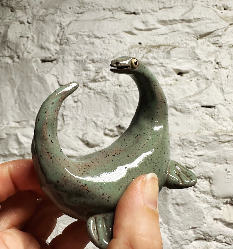 It's Champ the Lake Monster! Each figurine is handcrafted and one of a kind, so each will differ slightly from the photo.