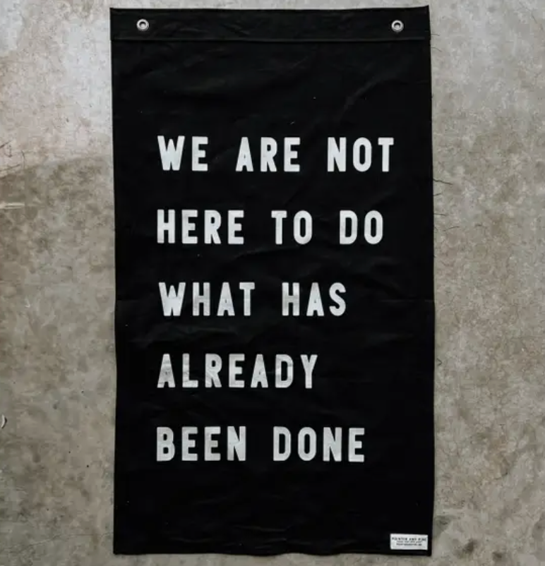 Vintage-style black grommeted flag. SIZE: 36" x 22.5"