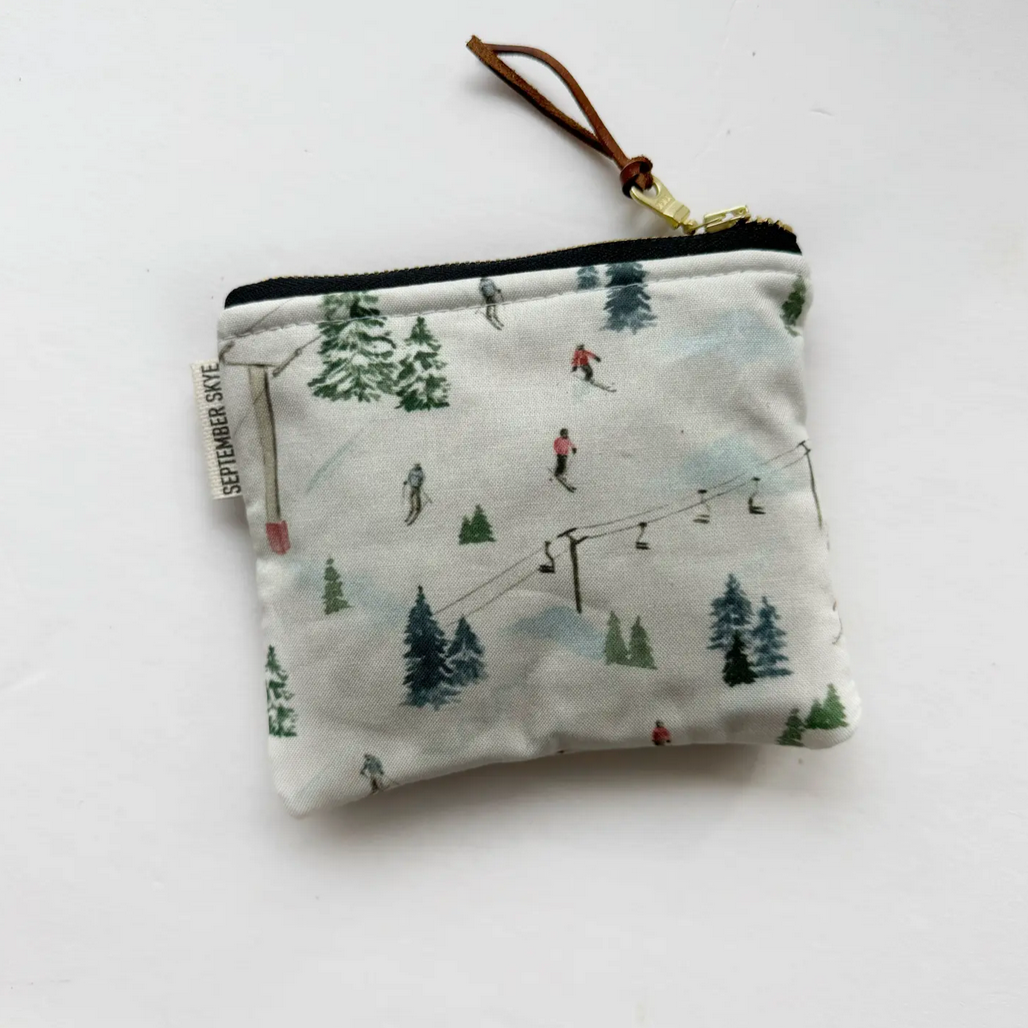 Sweet, small and square coin purse or pouch! Fits a chapstick, money, jewelry and more! It has a sturdy ykk metal zipper with an adorable leather frindge tie on the zipper pull.