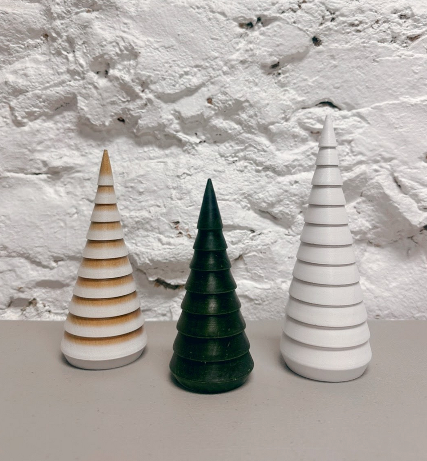 Using traditional woodworking techniques, the artisans shape and turn the bat scraps on a lathe. The lathe spins the wood, allowing us to carve and shape it with precision. They use chisels, gouges, and other tools to remove excess material and create the desired form, paying close attention to the natural grain of the wood. The grain patterns add character and uniqueness to each tree, resulting in a visually captivating piece. The minimalist interpretation of the fir boughs is carefully positioned to create a balanced and organic appearance, taking inspiration from the branching patterns of real trees.
