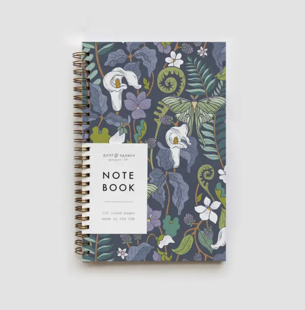 Gold coil spiral bound notebook, crafted by hand. Created plastic-free with minimal packaging to eliminate waste and honor our beautiful earth.