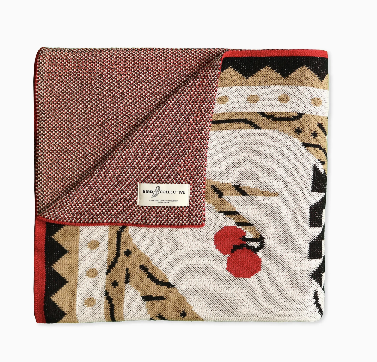 This beautifully knit blanket showcases nine woodpeckers species found in North America in a geometric design. Made locally, this soft and luxurious knit piece captures these striking birds,